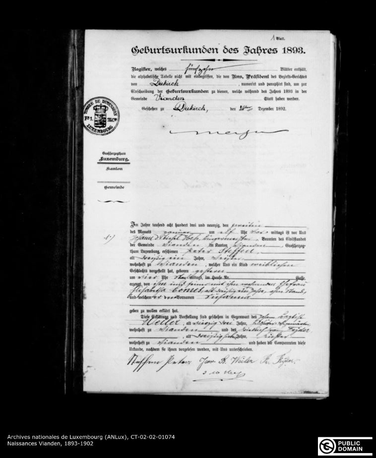 2018 hat das Luxemburger Nationalarchiv die Personenstandsakten des Bezirksgerichts Luxemburg und des Bezirksgerichts Diekirch online zur Verfügung gestellt. Diese Dokumente können aus der Ferne mit Hilfe der Suchmaschine des Nationalarchivs eingesehen werden (Luxemburg und Diekirch).