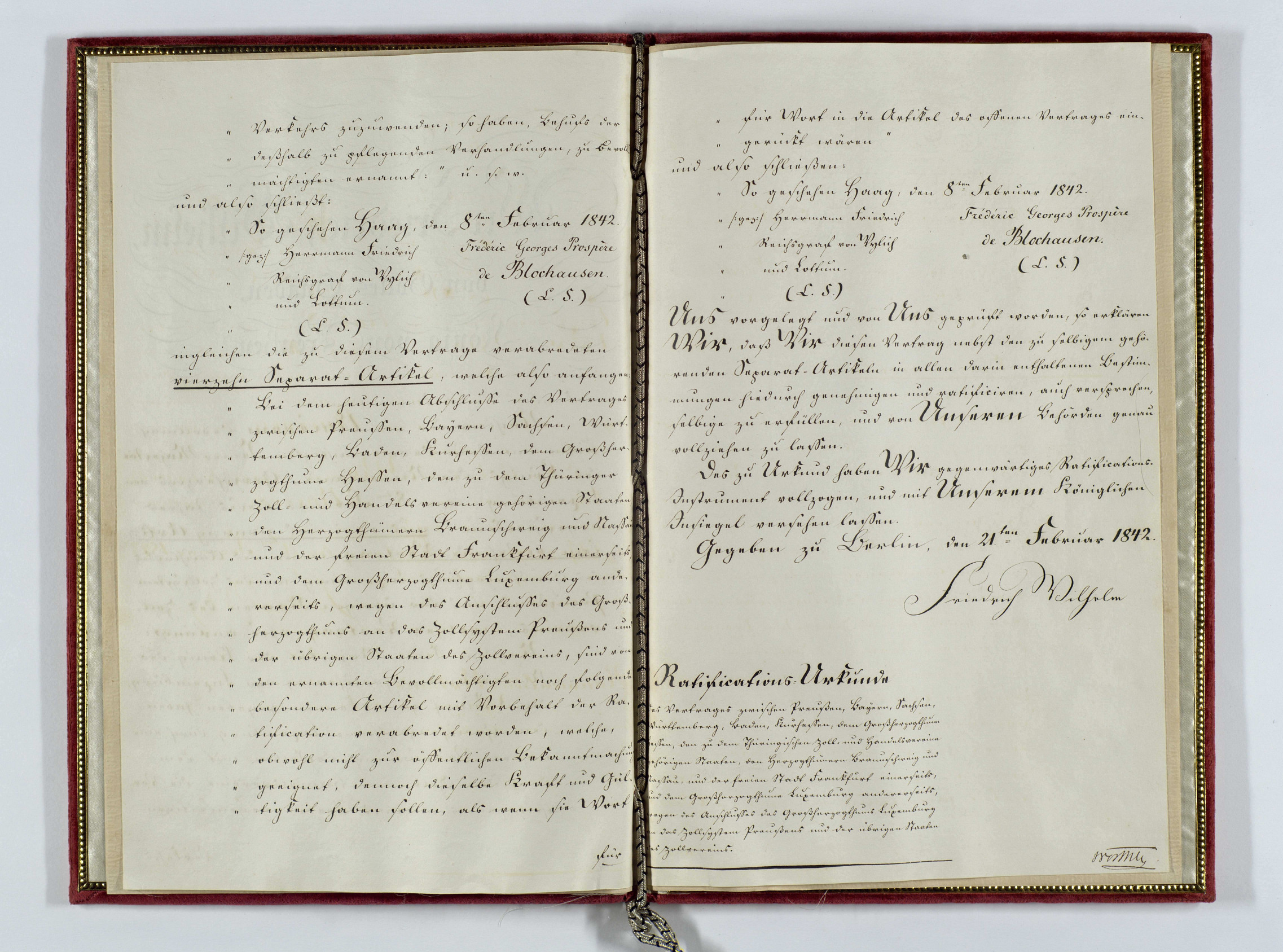 ANLux, TC-0005-02, Traité d'accession du Grand-Duché au Zollverein - Acte de ratification de la Prusse, 21.02.1842