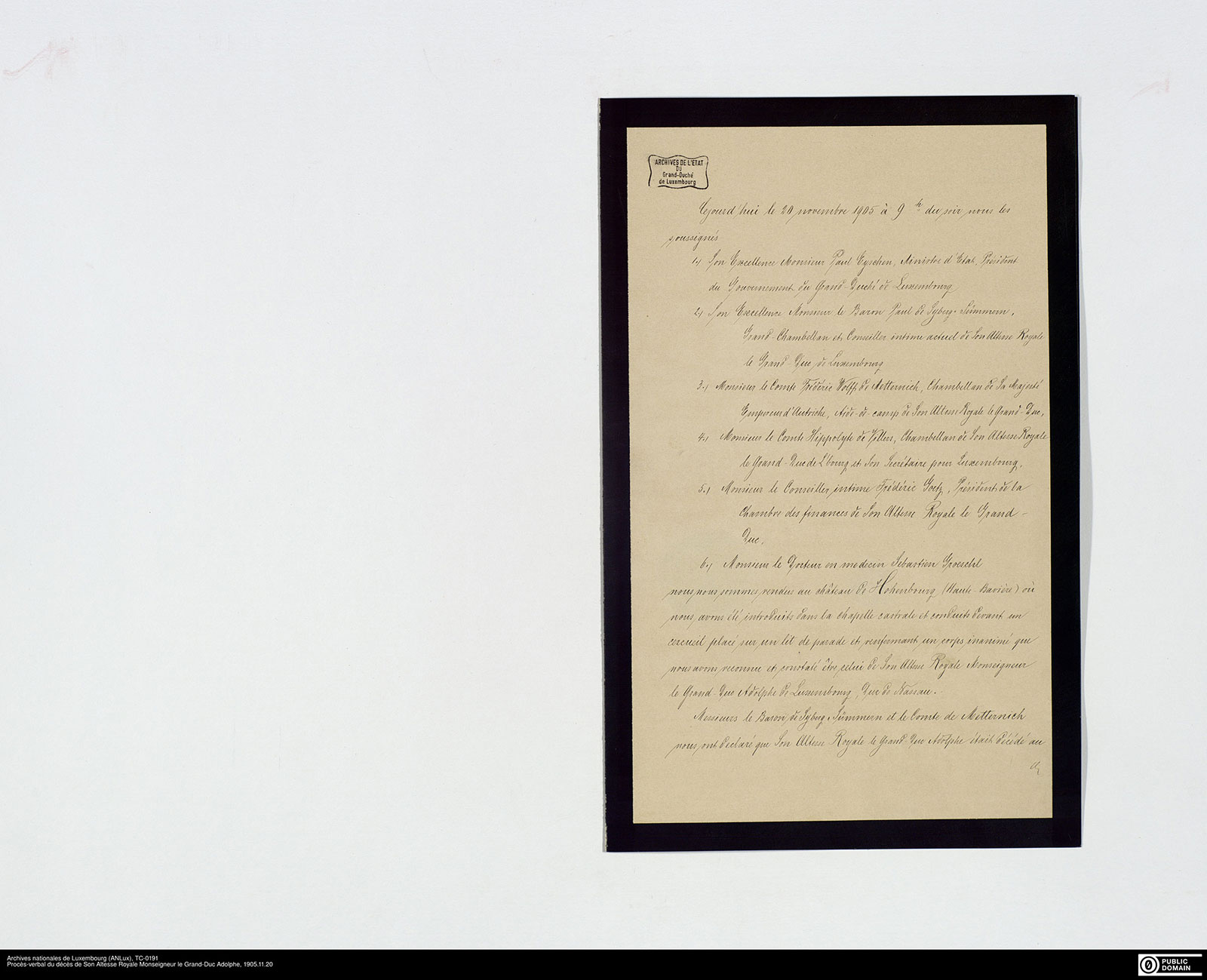 ANLux, TC-0191, Procès-verbal du décès de Son Altesse Royale Monseigneur le Grand-Duc Adolphe, 1905
