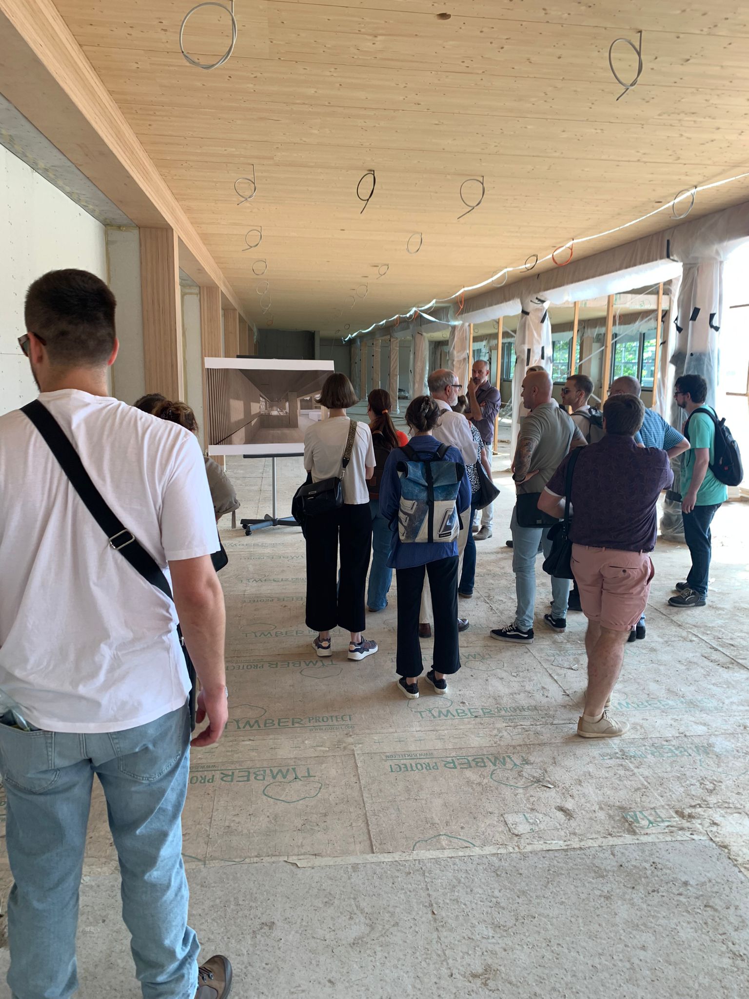 Répartis en deux groupes, les collaborateurs ont exploré le site ainsi que le nouveau bâtiment en construction et ont obtenu un premier aperçu des futurs bureaux et dépôts. Ces derniers sont encore vides pour l’instant, mais ils vont bientôt accueillir nos quelques 45 kilomètres linéaires de documents.